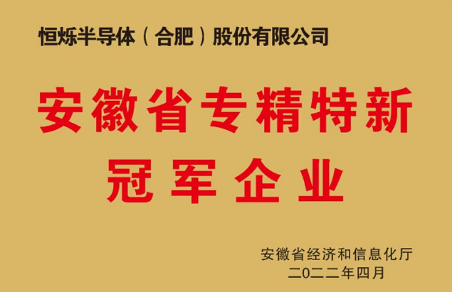 獲得“安徽省專精特新冠軍企業(yè)”稱號(hào)