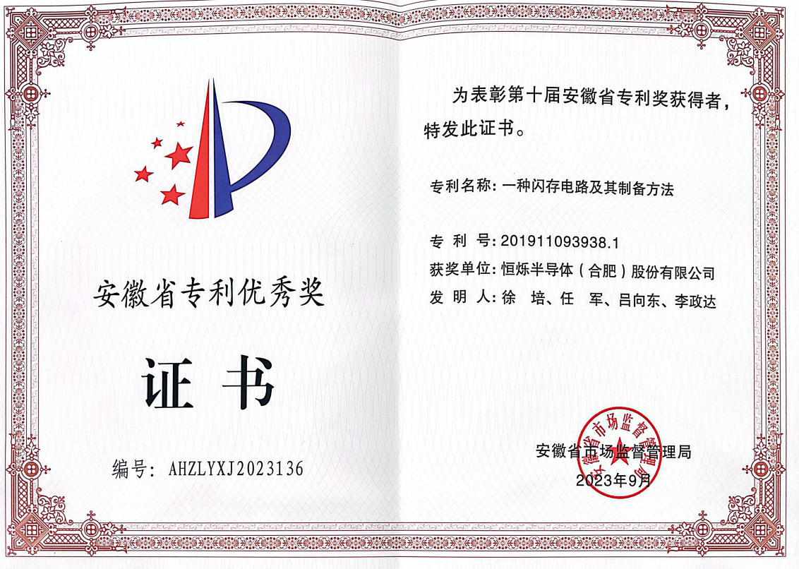 • 2023年第十屆安徽省優(yōu)秀專利獎(jiǎng)-一種閃存電路及其制備方法
